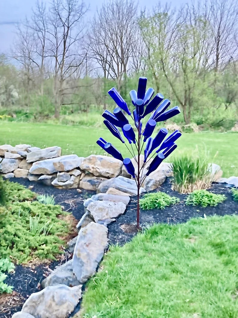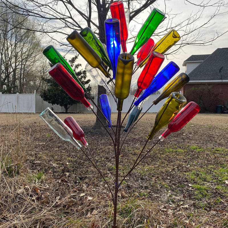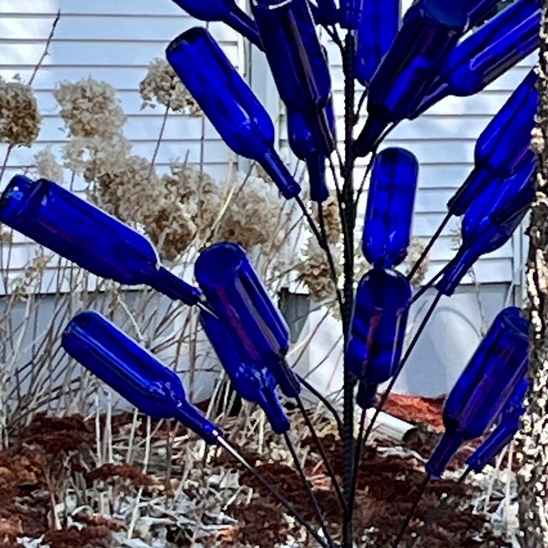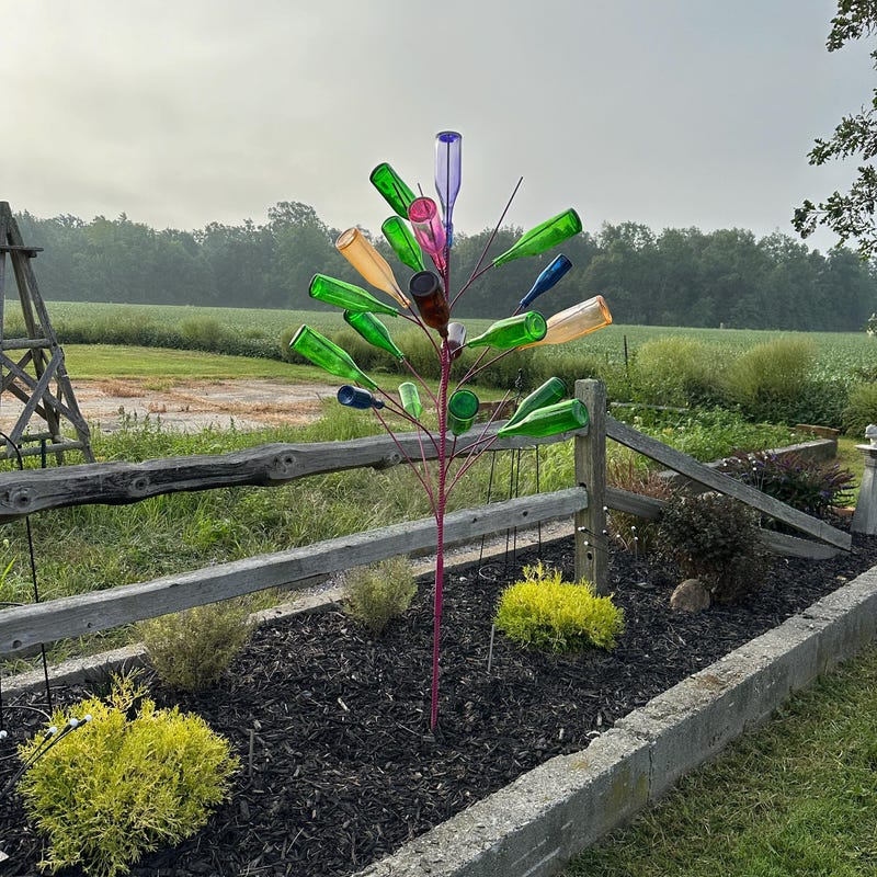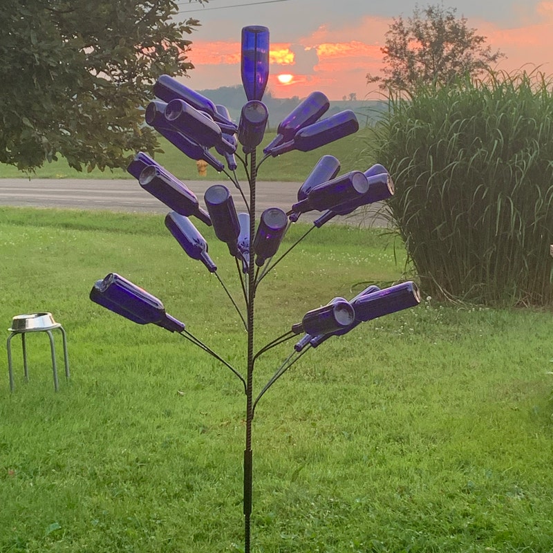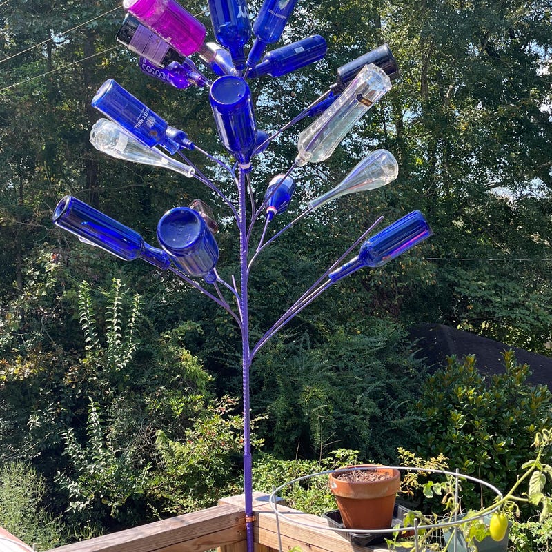 bottle tree is beautiful! best one out there that I could find and when i saw in person the quality is outstanding! they even gave me a free tiny blue glass bottle to stick to my window to hold a flower. such a happy surprise! bought for my mother as a gift and she is head over heels in love with it! thank you so much!