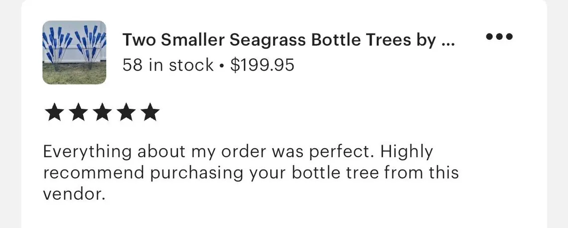 4 reviews for Two Smaller Seagrass Bottle Trees by Cubby’s!