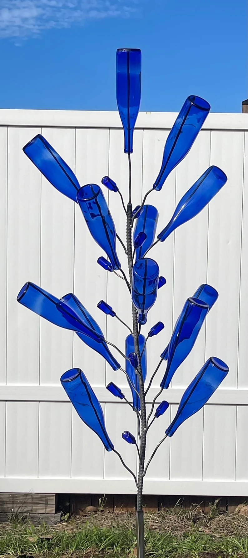Beautiful design, obviously thoughtfully crafted. Very clear installation instructions. I am delighted to have this artistic bottle tree in my garden for my old bottle collection. Thank you!