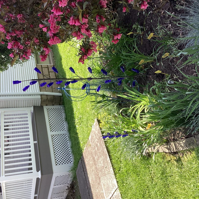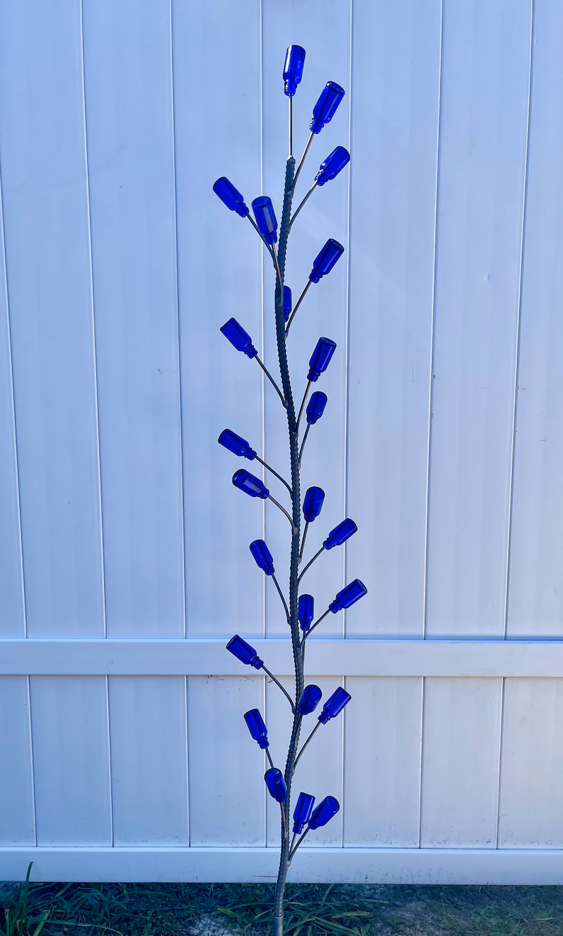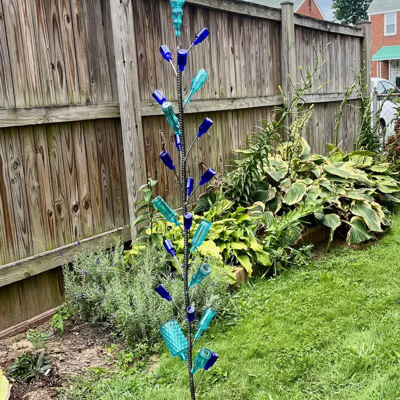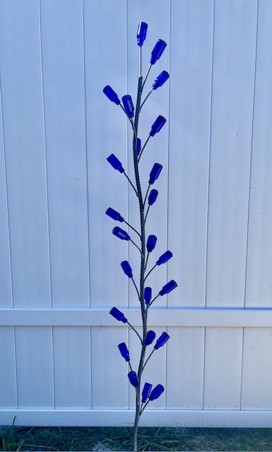 Had a few days of cold windy weather when it arrived so could not get it “planted” right away. I did open the package immediately & was very excited. My husband commented that your welding is qulity work. I enjoyed your letter explaining your process, it shows clearly that you take pride in your work & the end product shows it. I was thrilled to know that I got your first “morning glory” tree, I have seen many bottle trees in various shapes and colors but never one with small bottles (honestly it was the deciding factor in my purchase) It is a beautiful piece of yard art that fits perfectly in the corner area of our fence. The blue color is so pretty in the sunlight. I LOVE IT & could not be happier! It arrived quickly & was well packaged. Thank you so much!! Have told many friends/family about your business.